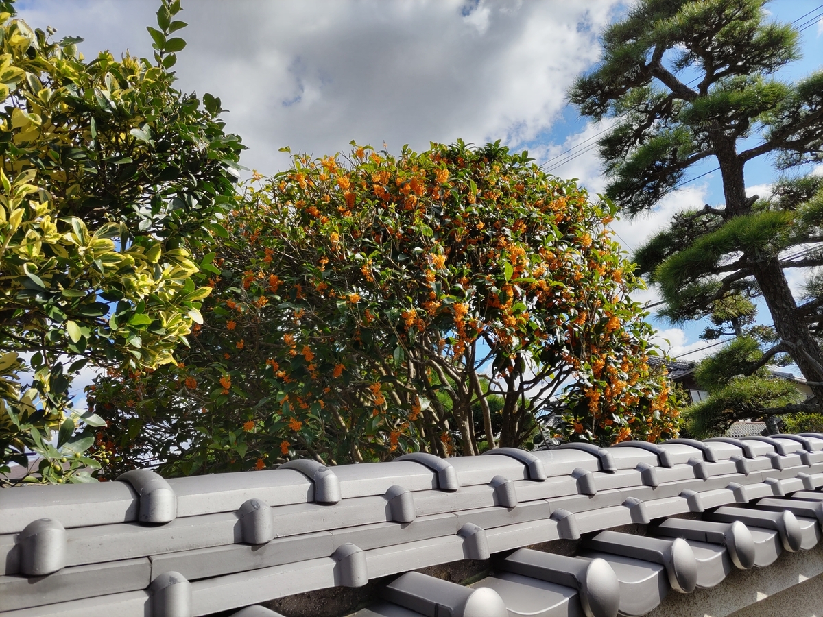 その香りの正体は、お隣の庭の大きなキンモクセイでした。